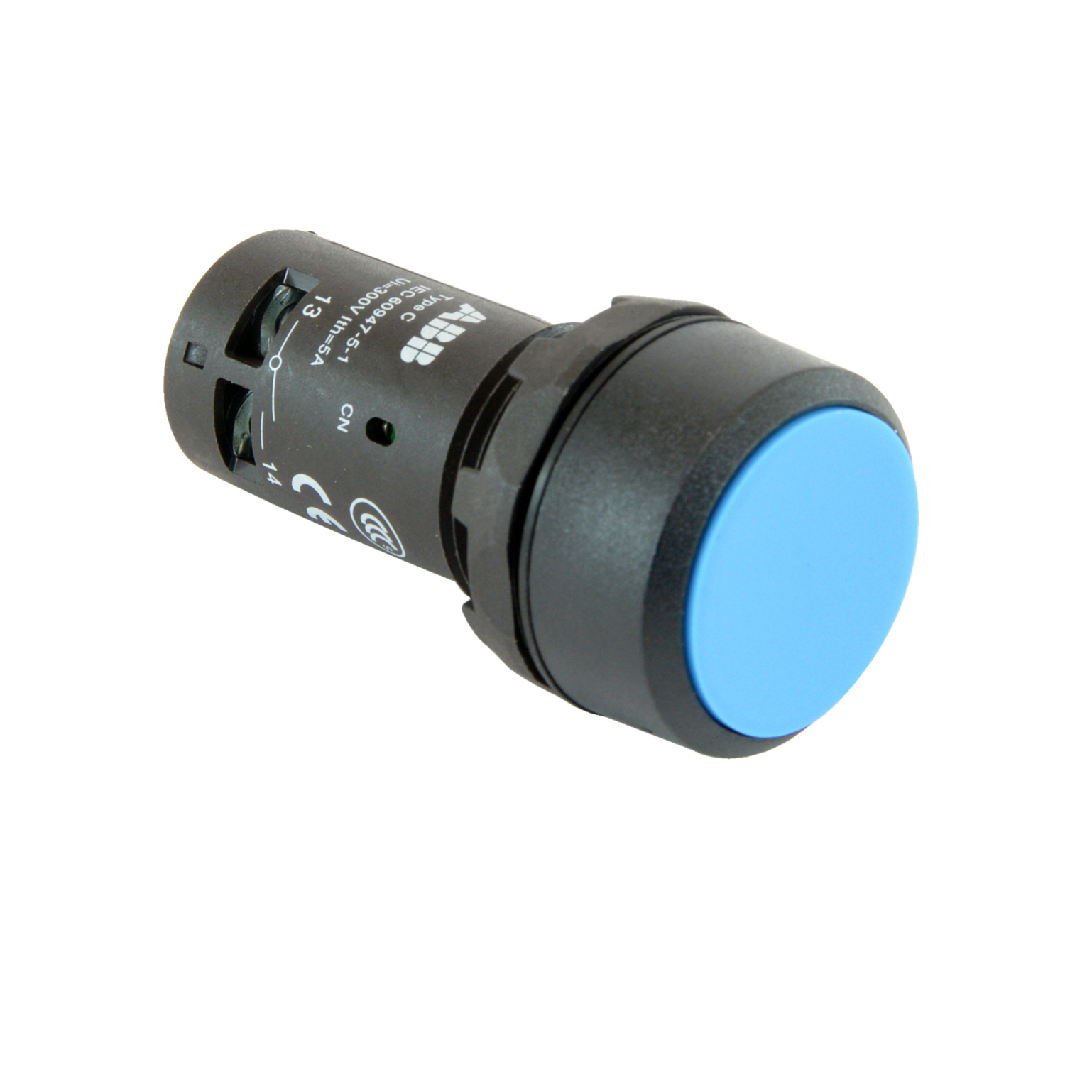 Special Features | Compact Pushbutton - Momentary - Flush - Blue - Non-illuminated - Black plastic - 1NO |