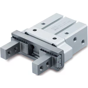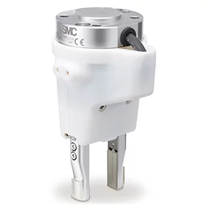 A pneumatic gripper is used for general pick and place applications. The series include pneumatic rotary grippers, two, three and four finger parallel styles that are ideal for gripping and centering; a wide opening parallel model pneumatic gripper, designed to accommodate many different sized parts; a heavy duty style, suitable for a wide range of applications; an angular model with speed adjustment built in; a toggle to give reliable gripping support; a low-contamination style, equipped with a protective boot; and electric gripper models.