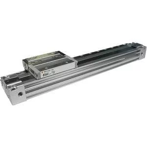 The rodless cylinder with a high precision guide type are ideal for transfer and pick and place of high load work pieces. This uses two linear guides to allow higher loading.