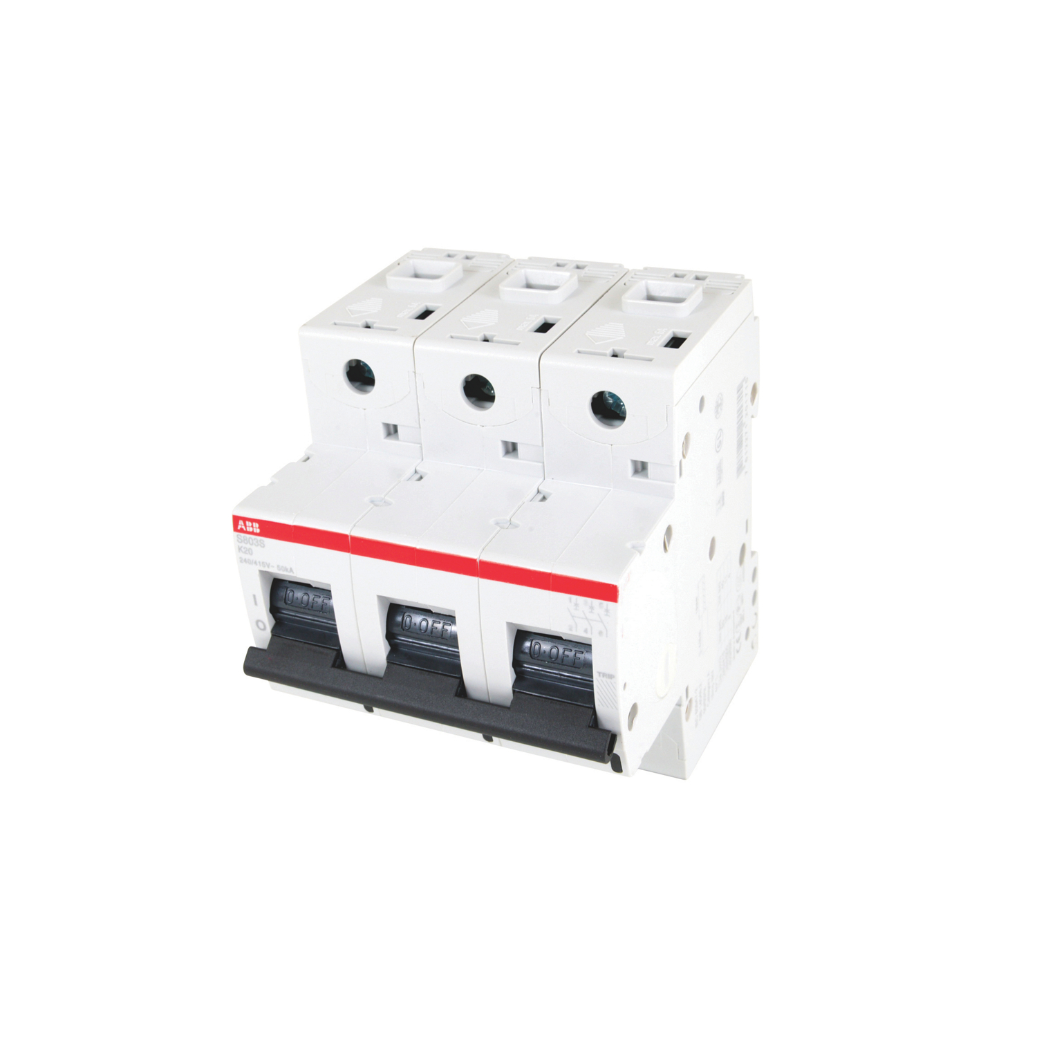 Special Features | The S803S-K20 is a 3-pole High Performance Circuit breaker with K-Characteristic, with cage terminal and a rated current of 20 A. It is a current limiting device with a maximum breaking capacity of 50kA at 240/415V. It can be used for voltages up to 400/690V and in DC as well. It has two different tripping mechanisms, the thermal tripping mechanism for overload protection and the electromechanic tripping mechanism for short circuit protection. The S803S-K20 complies with IEC/EN 60898-1 and IEC/EN 60947-2 and allows the use for residential, commercial and industrial applications. It has numerous of approvals, therefore it can be used worldwide. The extensive range of accessory makes the use of S803S-K20 more comfortable. Due to the fast arc extinction of S803S-K20 your application will be secured. |
