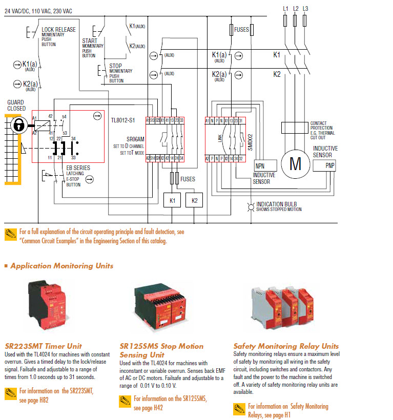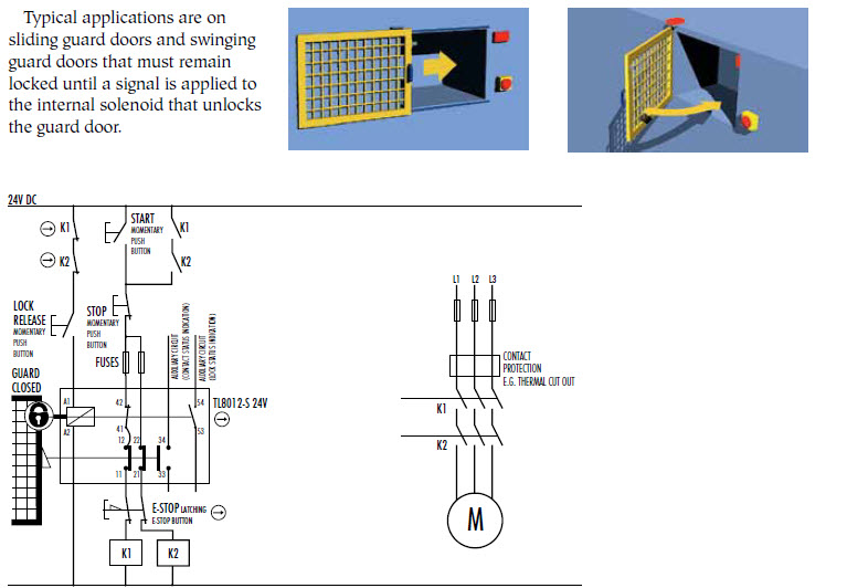- Door and lock monitoring—the TL8012-S has a total of 5 contacts: 2 N/C safety + 1 N/O for door position monitoring plus 1 N/C + 1 N/O for lock monitoring.